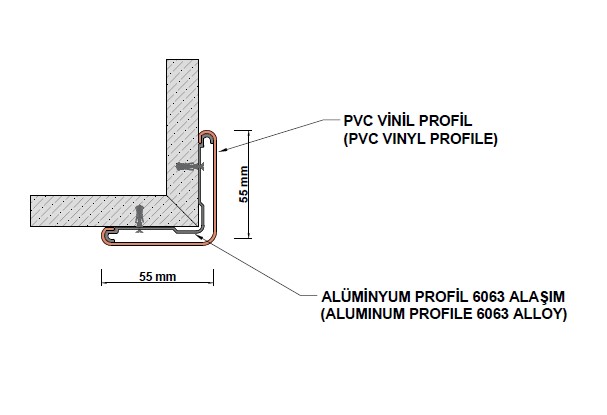 • Doğrudan köşeye yapıştırılan veya alüminyum takviye profiline geçirilerek gizli vida ile tespit edilen iki tipi mevcuttur.